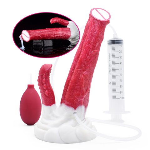 FAAK Nova chegada 9.06 polegada enorme ovelha animal artificial pênis cor sangrento silicone líquido produtos do sexo para mulheres sexo