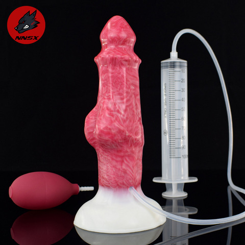 Nnsx dildo de cachorro com ventosa para ejaculação, masturbação fantasia, em formato de pênis, 4 pontos, brinquedo sexual